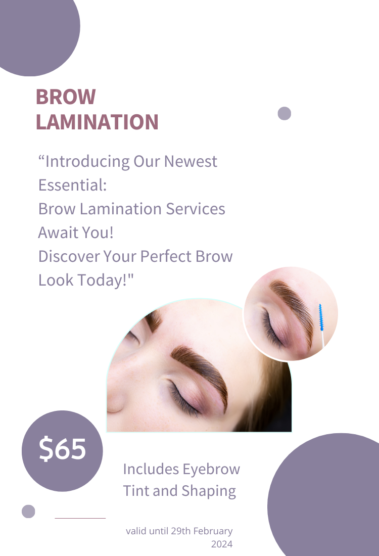 This treatment, which includes Eyebrow Tint and Shaping, will last between 6-8 weeks and is priced at $65.00.